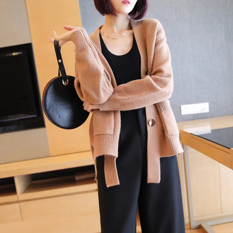 Big Discount Short loose sweater coat female 2019 new women thick long-sleeved knit cardigan