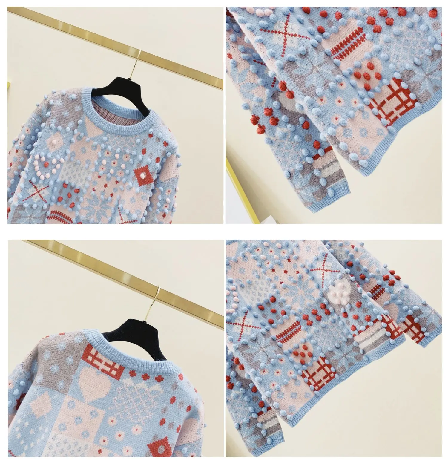 Big Sale 2020 Spring Sweater Women New Korean-Style Retro Stereo Ball Sweater Lazy Wind Vintage Sweater Wome
