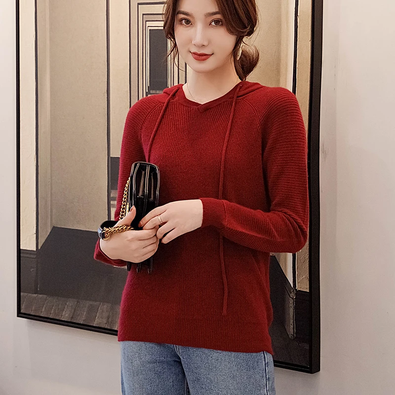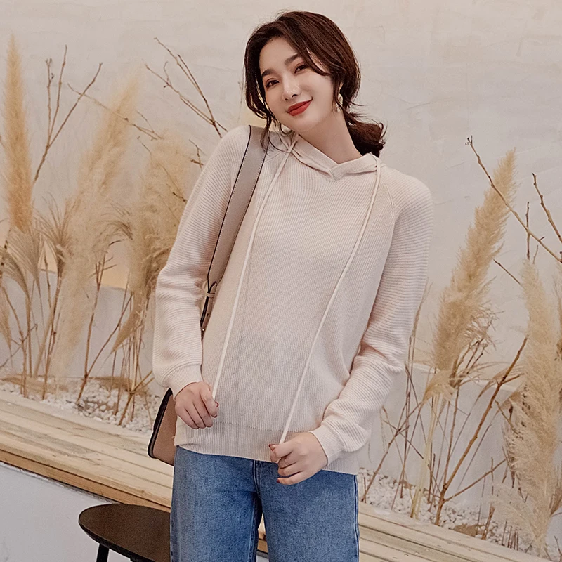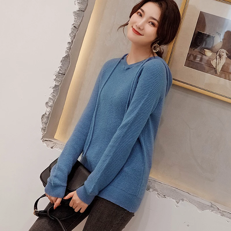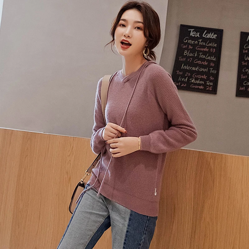 New Arrival LHZSYY 2019Autumn Winter New Women' Pure Cashmere Sweater Fashion Warm Hooded Collar Knitted Pullov