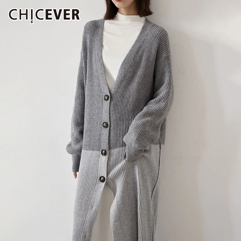 Hot Promo CHICEVER Korean Knitted Hit Color Women's Sweater Long Sleeve V Neck Long Female Cardigans 2019 Aut