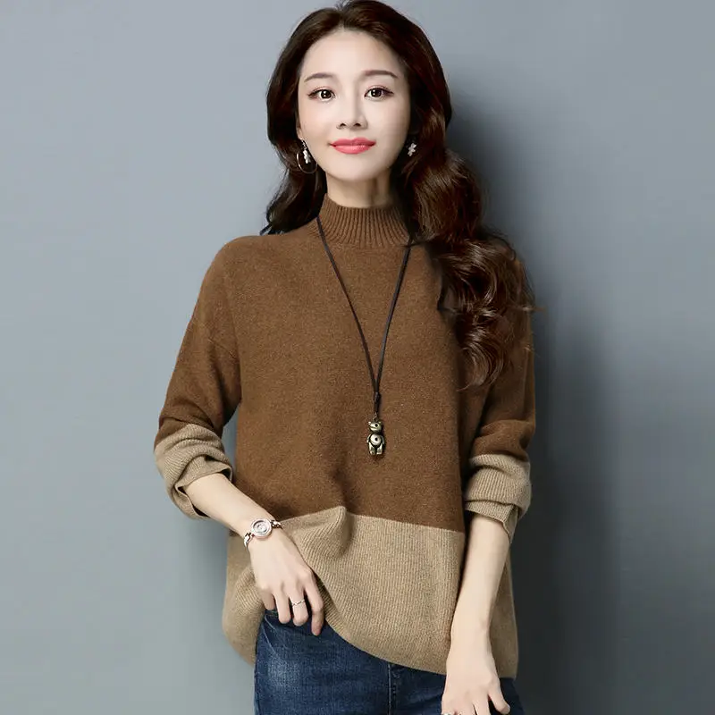 Best Price 2019 spring new women knitted sweater high collar casual pullover loose large size knitwear fashion