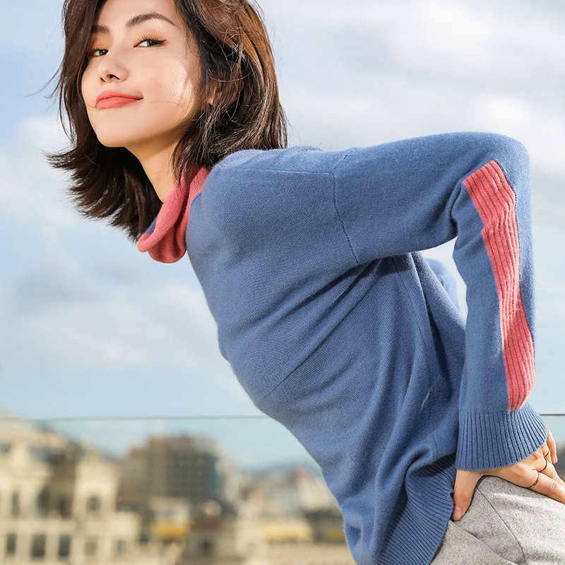Best Price 2019 winter new thick 100% pure cashmere sweater female high collar lazy loose cashmere sweater wom