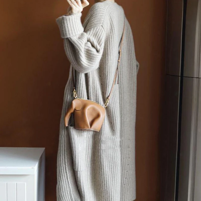 Best Price BELIARST 2019 Autumn Winter New Heavyweight Cashmere Cardigan Women's Long Loose V-Neck Sweater Kni