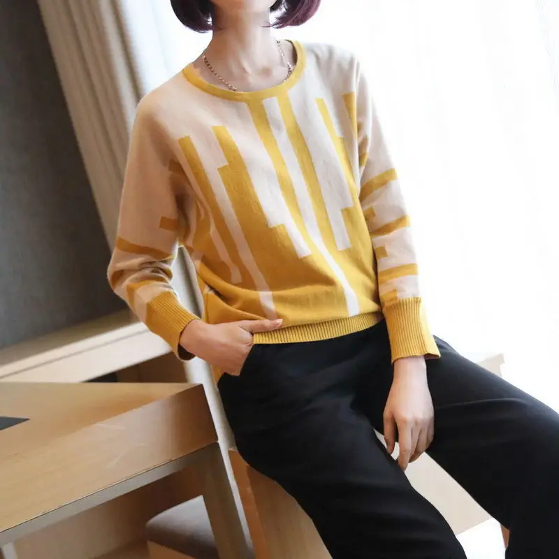 Best Price Fashion short paragraph bottoming shirt striped long-sleeved sweater loose pullover 2019 new women