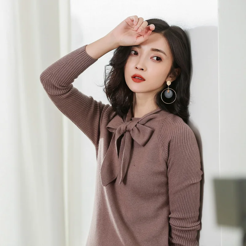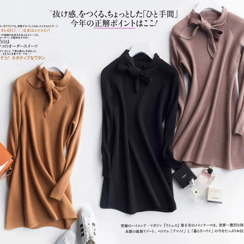 Wholesale JECH Women Autumn Winter Sweater Dresses Warm Slim Butterfly Collar Vestidos Sexy Bodycon Solid Rob