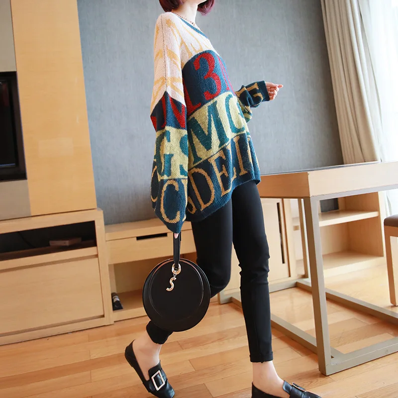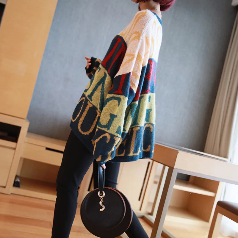 Big Sale Korean alphabet casual long-sleeved sweater female loose pullover jacket thin section 2019 new wint