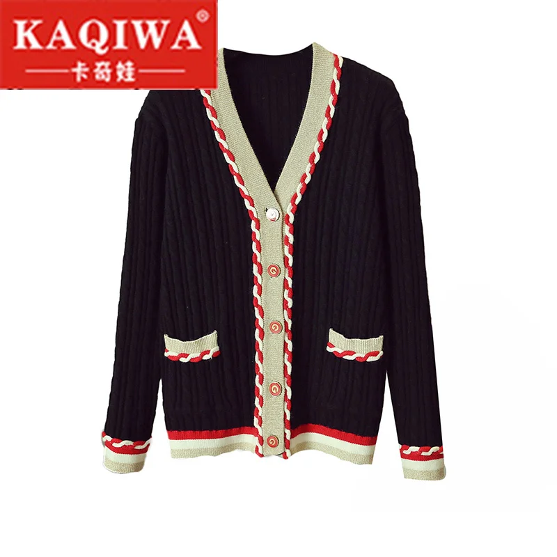 Cheap 2018 Autumn Women Cardigans Vintage Color Block Twist Crochet Jersey Knitted Sweater Women Pockets