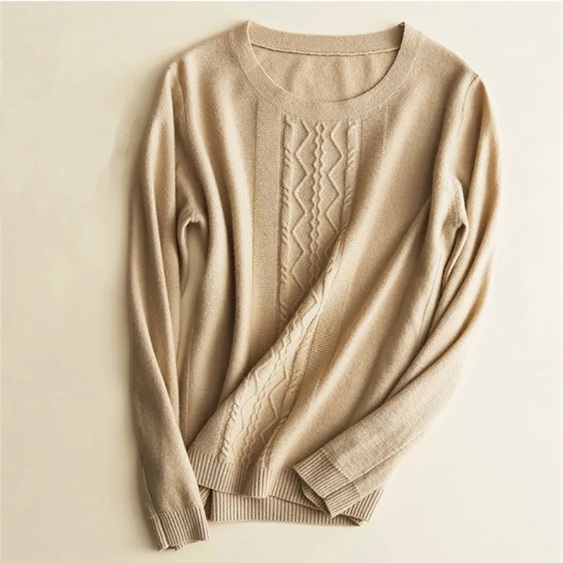 Big Sale cashmere wool blend twisted knit women new fashion bottoming short pullover sweater low Oneck beige