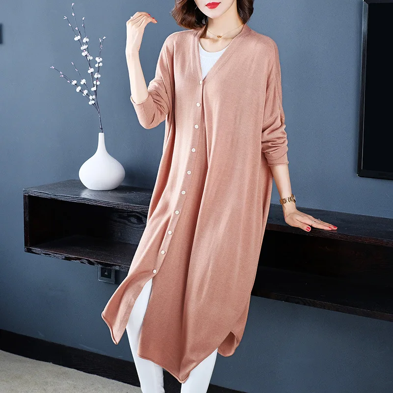Hot Product 2019 Spring Autumn Women Long Knitted Cardigan Cotton Thin Sweater Fashion Crochet Jacket Casual Of