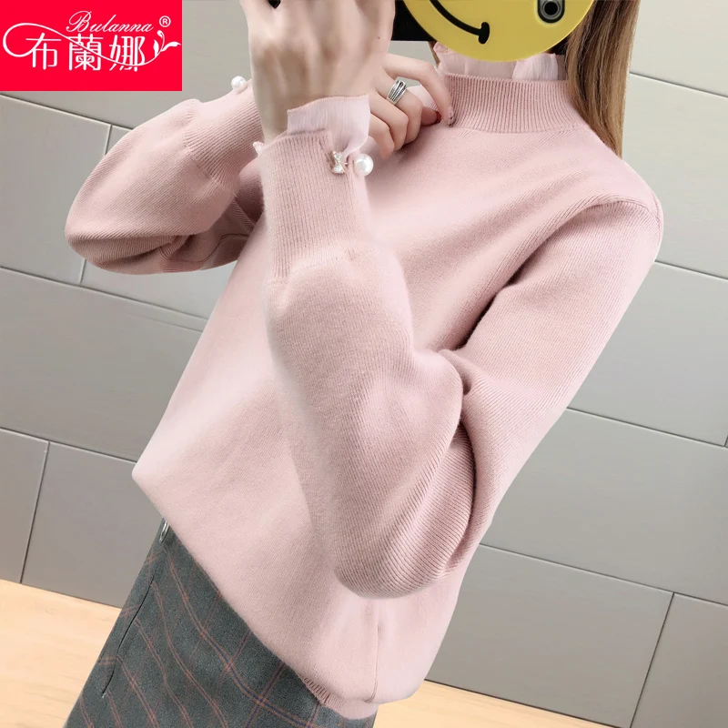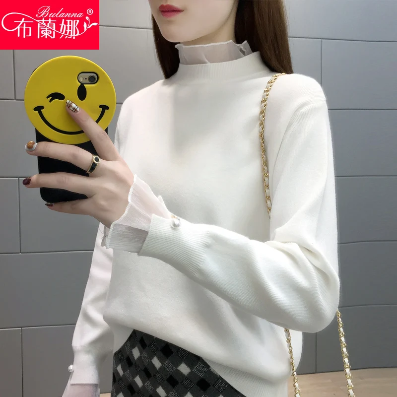 Discount Korean sweet chiffon splicing loose sweater jacket fashionable knit shirt backing pearls mesh flare
