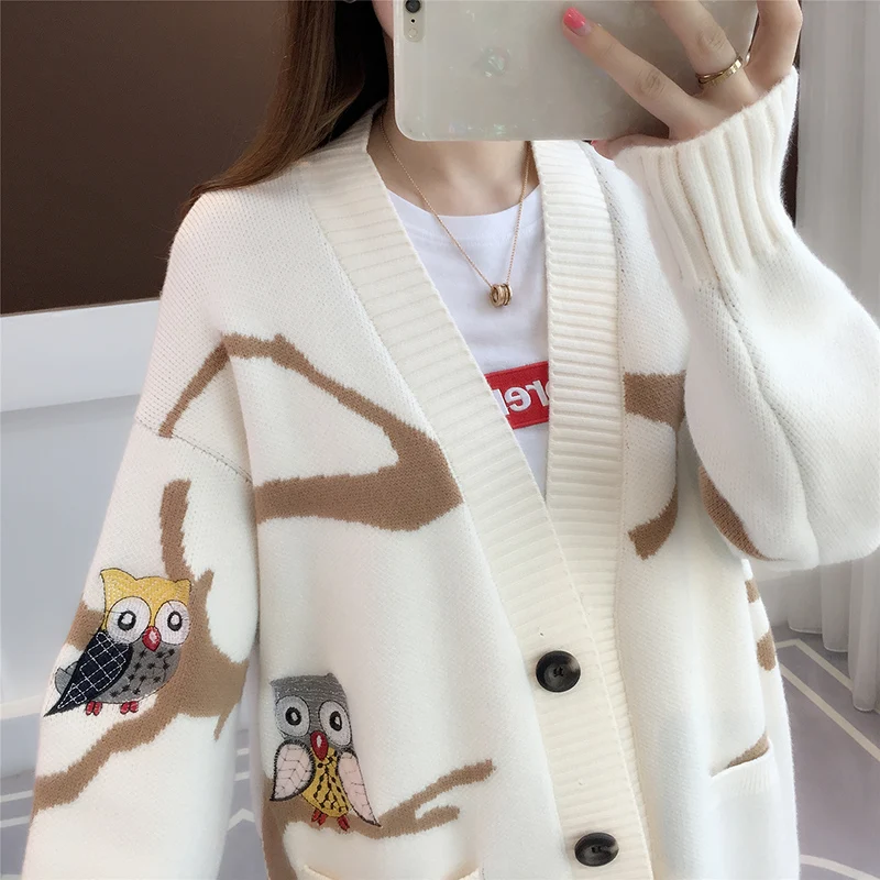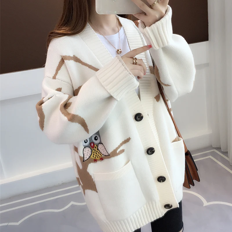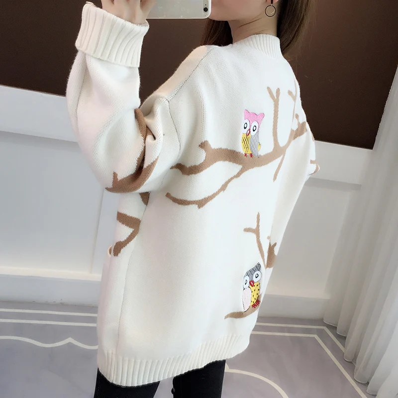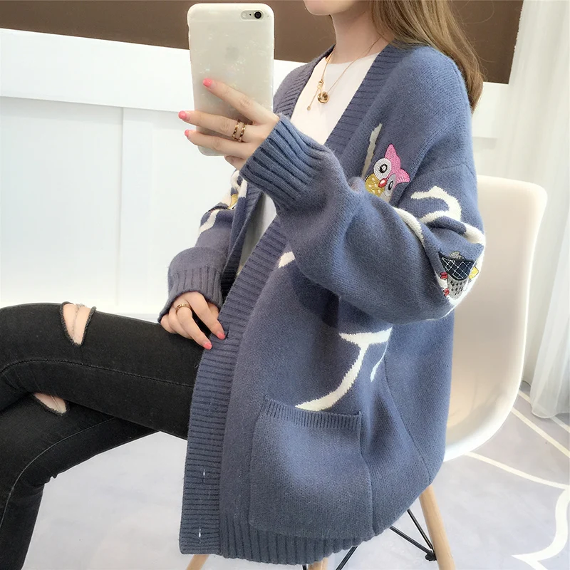 Best Price 2019 new knitted sweater cardigan autumn wear medium and long Korean version student embroidered sw