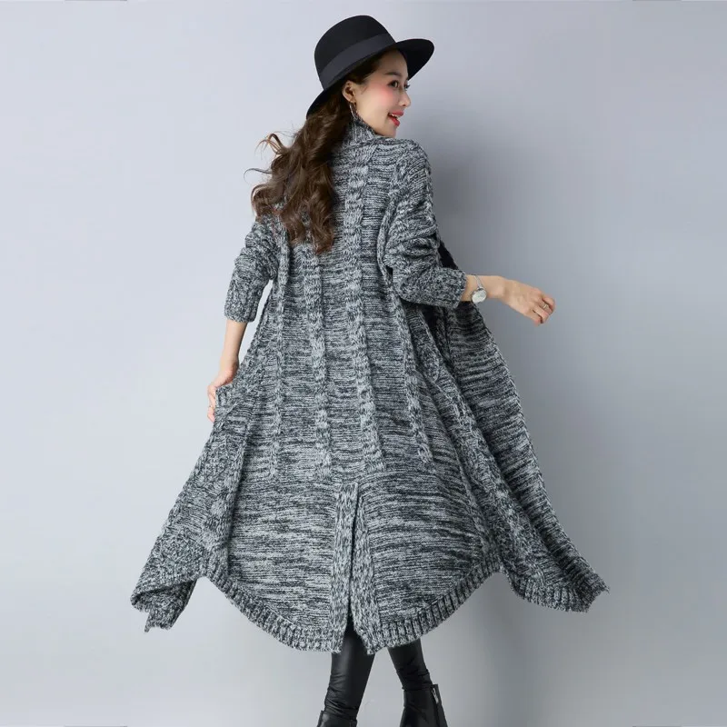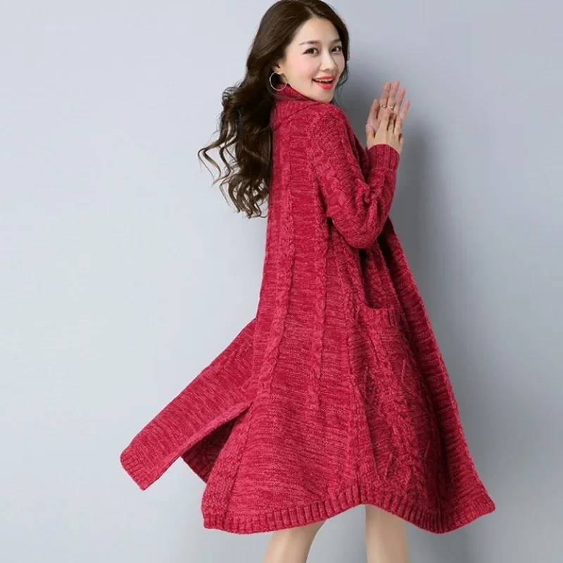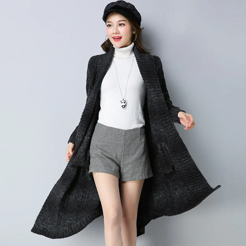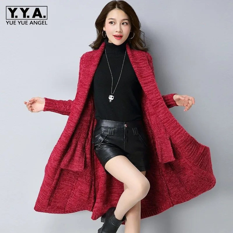 Hot Promo Fashion Women Medium Long Knitting Cardigan Fall Winter Solid Red Gray Black Plus Size 3XL Loose Lo
