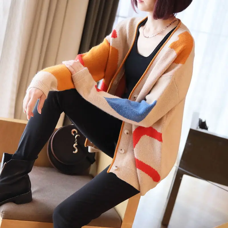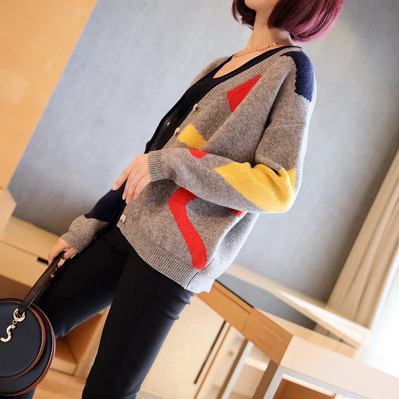 Promo Female short paragraph long-sleeved sweater coat thick and long sections loose knit cardigan 2019 n
