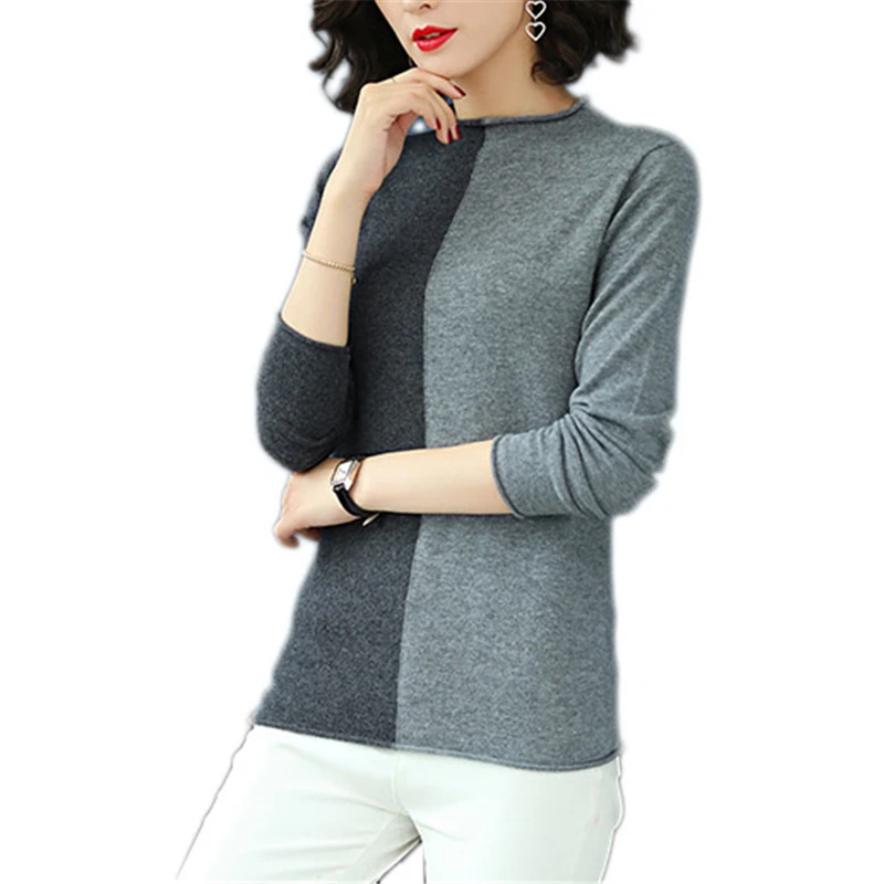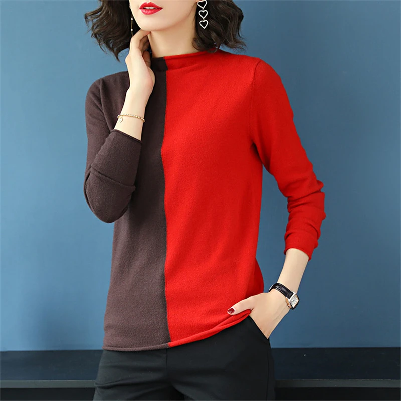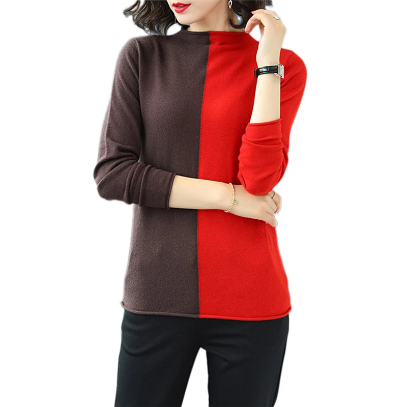 Big Sale Women Wool Pullover Spring 2019 New High Collar Color Matching Bottoming Sweater Long-Sleeved Autum