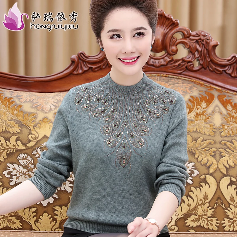 Discount 2019 sweaters women autumn and winter 40-50 years old short pants thicker jackets middle-aged and W