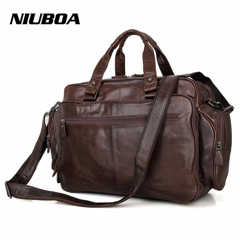Promo NIUBOA 100% Genuine Leather Bag Man Business Laptop Bags Big Euro Briefcase Many Offices Pockets Cr