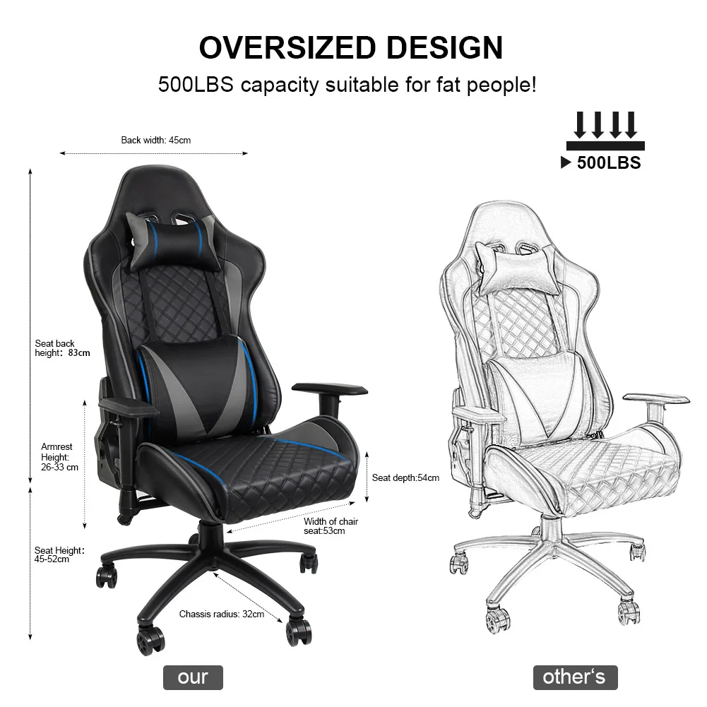 Big Sale Ergonomic Computer Gaming Chair Racing High Back PU Leather Adjustable Angle with Headrest Lumbar S